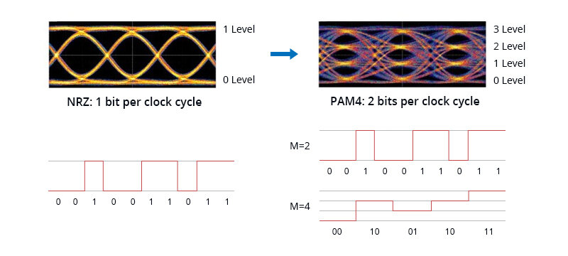 PAM4 (4 Pulse Amplitude Modulation) - это технология модуляции, что подходит для высокоскоростного межсоединения сигналов в дата-центре следующего поколения, который прокладывает путь к 400G Ethernet в ЦОД.