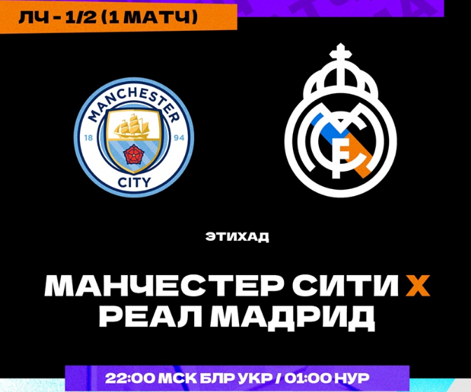 🔥 ДЕНЬ МАТЧА! ⚽ «Ман Сити» – «Реал Мадрид» 🕰 22:00 по МСК⏳