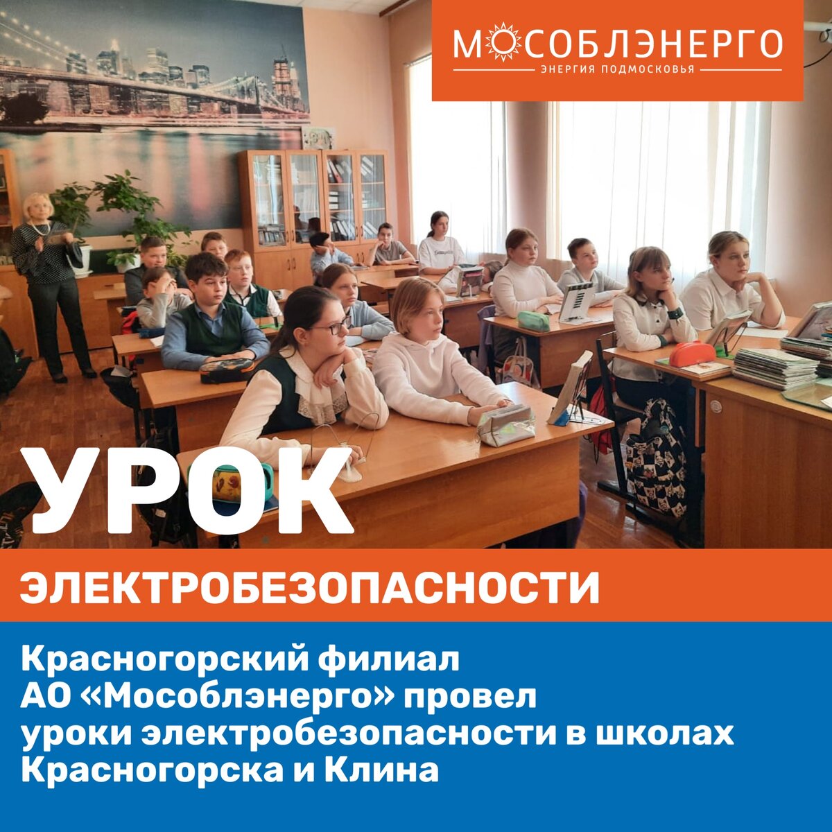 Красногорский филиал АО «Мособлэнерго» провел уроки электробезопасности в школах Красногорска и Клина