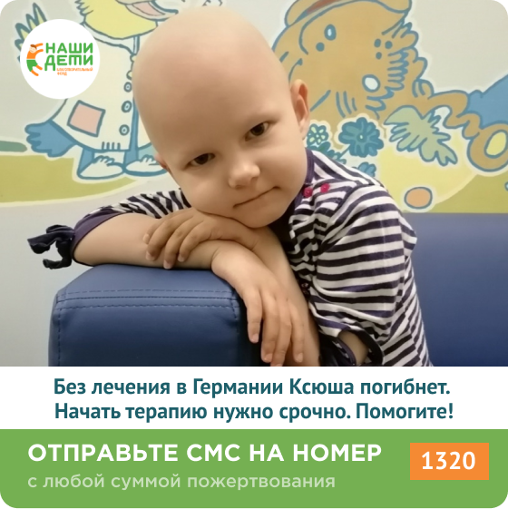 Ксюша угасает на глазах, у организма нет сил бороться, а у нас времени на спасение! Пожалуйста, помогите успеть! Здравствуйте, дорогие читатели! К сожалению, мы не можем изменить судьбу всех ребят, которых поражают страшные болезни. Хотя это было бы прекрасно, и каждый из нас может о таком мечтать. Но мы в силах подарить надежду и помочь этой девочке. И она нужна ей сегодня. Если не провести лечение в Германии, надежд больше не будет, жизнь оборвётся. Помогите спасти Ксюшу! Помогите Ксюше. Диагноз: РАК. Ганглионейробластома заднего средостения. Необходимо: Лечение в клинике Universitatsmedizin Greifswald (Германия). Сумма сбора: 2 500 000 руб. Ксюша мечтает дожить до выздоровления. Сбудется ли мечта? Время работает против маленькой Ксюши. Её организм стремительно слабеет, и она может просто не дождаться своего заветного выздоровления. За окном весна. Луч солнца кажется ей светом в конце этого страшного и смертельно опасного пути. Она подставляет ему личико через старое больничное окно