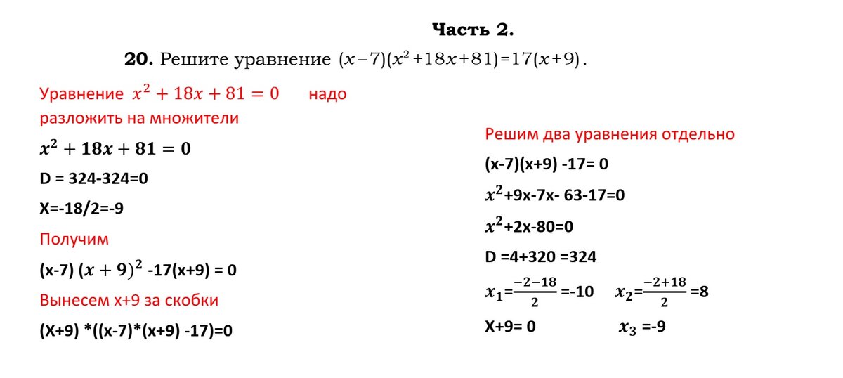 Решите уравнение (x -7) (x2+18x+81)=17(x+9)