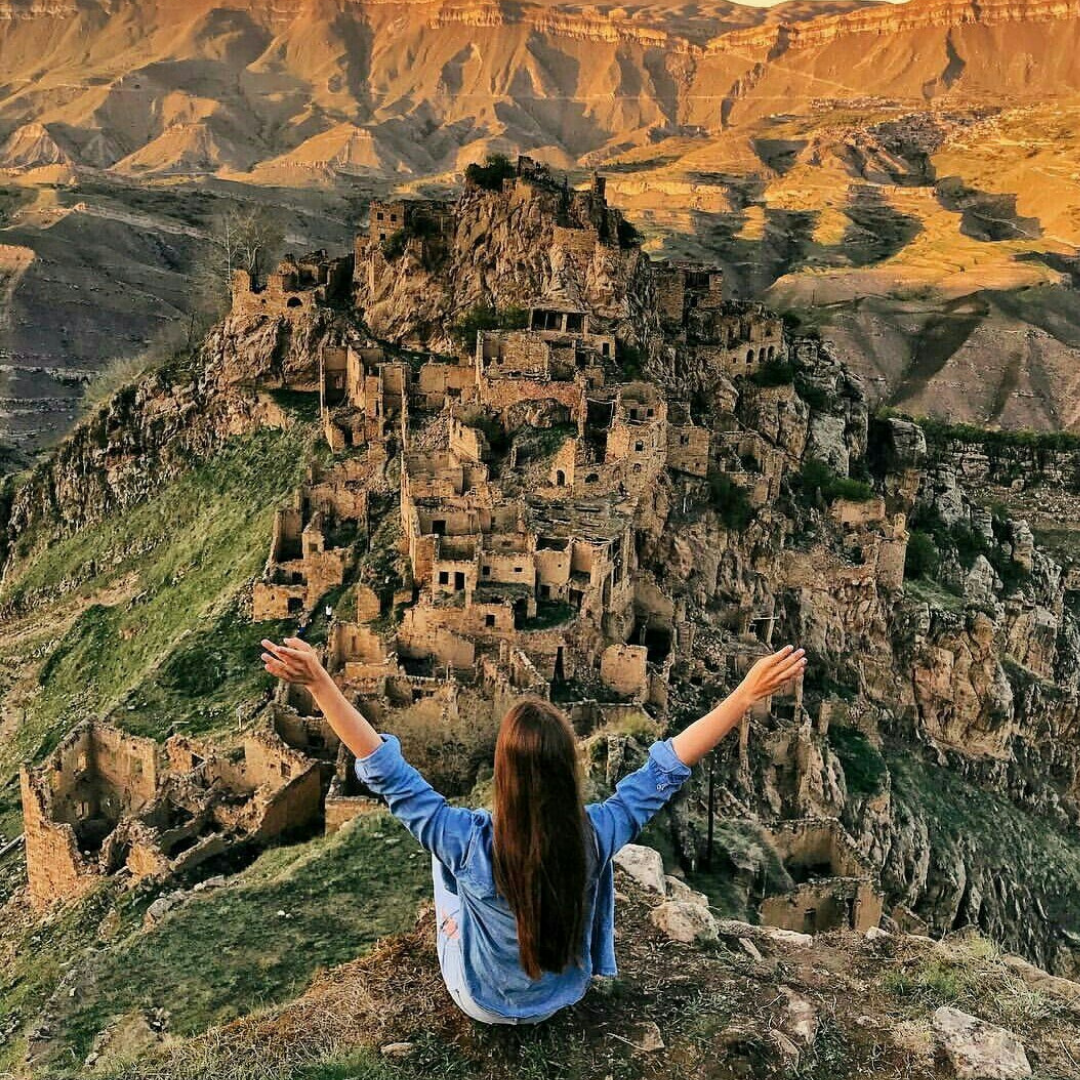 Итак, представим, что вы уже турист в Дагестане. Ваш отпуск ограничен, и вы должны посетить самые крутейшие места в республики. Что нужно посетить обязательно? А как насчет древнего заброшенного села, которое находится на склоне гор и к которому не так просто добраться? 👻Гамсутль – призрачный аул с многовековой историей. Село расположено в горском районе на высоте 1500 метров над уровнем моря. Аулу более 2000 лет. У него очень интересная и захватывающая история – здесь были найдены артефакты различных эпох и верований. В переводе с аварского языка «гамсутль» значит «у подножья ханской крепости». По предположениям историков на территории села в древности располагался ханский дворец-крепость. Если вы приехали за новыми ощущениями и эмоциями, то вам, пожалуй, сюда. Местный Мачу-Пикчу – настоящий центр притяжения туристов. Его отчужденность привлекает к себе большое количество людей – как местных жителей, так и приезжих. Что вас ждет? Гамсутль уже давно опустел, именно поэтому его называю