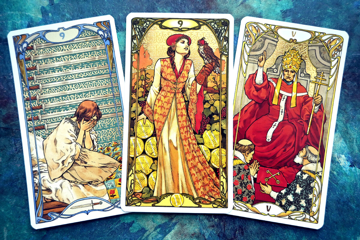 ВСЕМ МИР! С вами мастер Таро Маргарита Авилова. Предлагаю сегодня разложить карты и посмотреть, что происходит в вашей жизни с точки зрения Высших сил, какой совет они могут вам дать. Итак, ваши карты: Ситуация, в которой вы оказались - это испытание на прочность, проверка характера. Две девятки здесь считываются, как развилка дорог, или две стороны одной медали. Одна девятка - мечей - несет энергию угнетения, хочется сидеть в одиночестве, плакать под грустную музыку, жалеть себя. Но в то же время вам доступна и 9 пентаклей - это гордость за себя, свою силу, волю, решимость, смелость. И вам надо определиться, какую роль вы хотите занимать по жизни - быть жертвой или быть сильной личностью. Две девятки в вашем раскладе контрастны по своем содержанию, полярны, как ночь и день. У вас есть из-за чего грустить, о чем переживать. Но в то же время вам есть о чем радоваться, есть чем гордиться. Обе девятки призывают найти опору в себе, вам не на кого рассчитывать, не надо ничего ждать, р