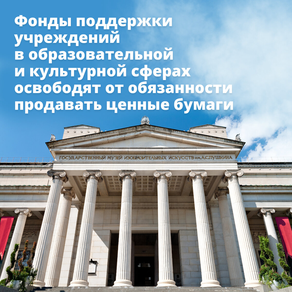 🏛Фонды поддержки учреждений в образовательной и культурной сферах освободят от обязанности продавать ценные бумаги