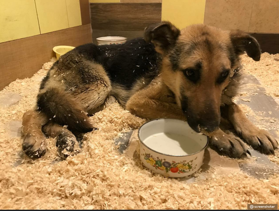 Пережив остановку сердца в первый день поступления он все еще борется за свою жизнь. Состояние его еще очень тяжелое, но собака хотя бы начала самостоятельно пить. Группа приюта