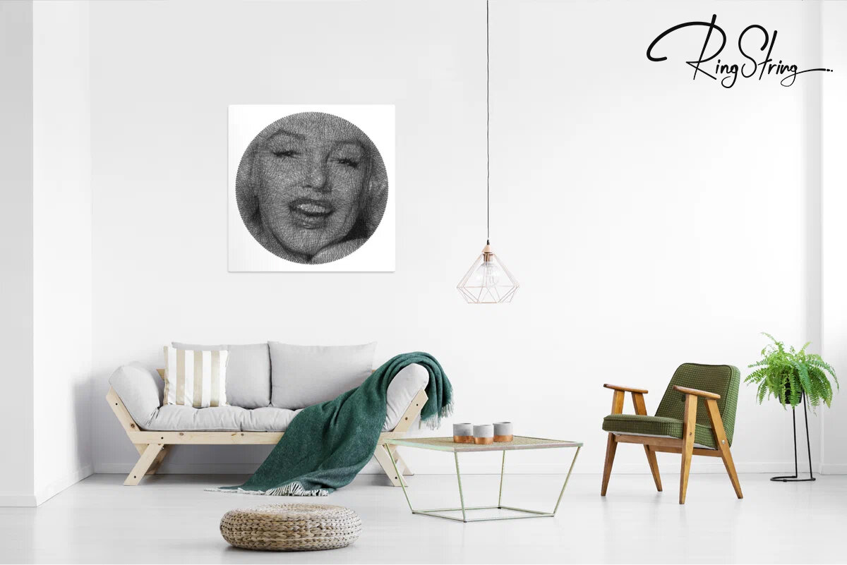 Теперь это можно сделать по абсолютно любой фотографии. А в результате получится универсальная картина, которая впишется практически в любой интерьер, например вот так ⬇ RingString - это первый в мире набор для создания картины из нитей по абсолютно любой фотографии. А еще это крутой подарок, который оценит девушка. Как это работает? Шаг 1 Возьмите набор. В нём есть всё, что может понадобиться: Шаг 2 Загрузите на сайт фотографию, которую хотите изобразить. Это может быть селфи, фото из отпуска, любимый мем, персонаж мультфильма, да всё что душе угодно. Система покажет, как будет выглядеть готовая картина. Шаг 3 Окунитесь в процесс и создавайте. Вы тут же получите инструкцию, вот тут то и начинается магия. Инструкция голосовая! Чтобы понимать, куда вести нить, на панно имеется накладка, на которой вся зона разделена на 4 сектора: A, B, C и D, а каждый гвоздь имеет свой номер. Диктор будет называть сектор и номер гвоздика, а вам останется только расслабиться и вести нить под диктовку на