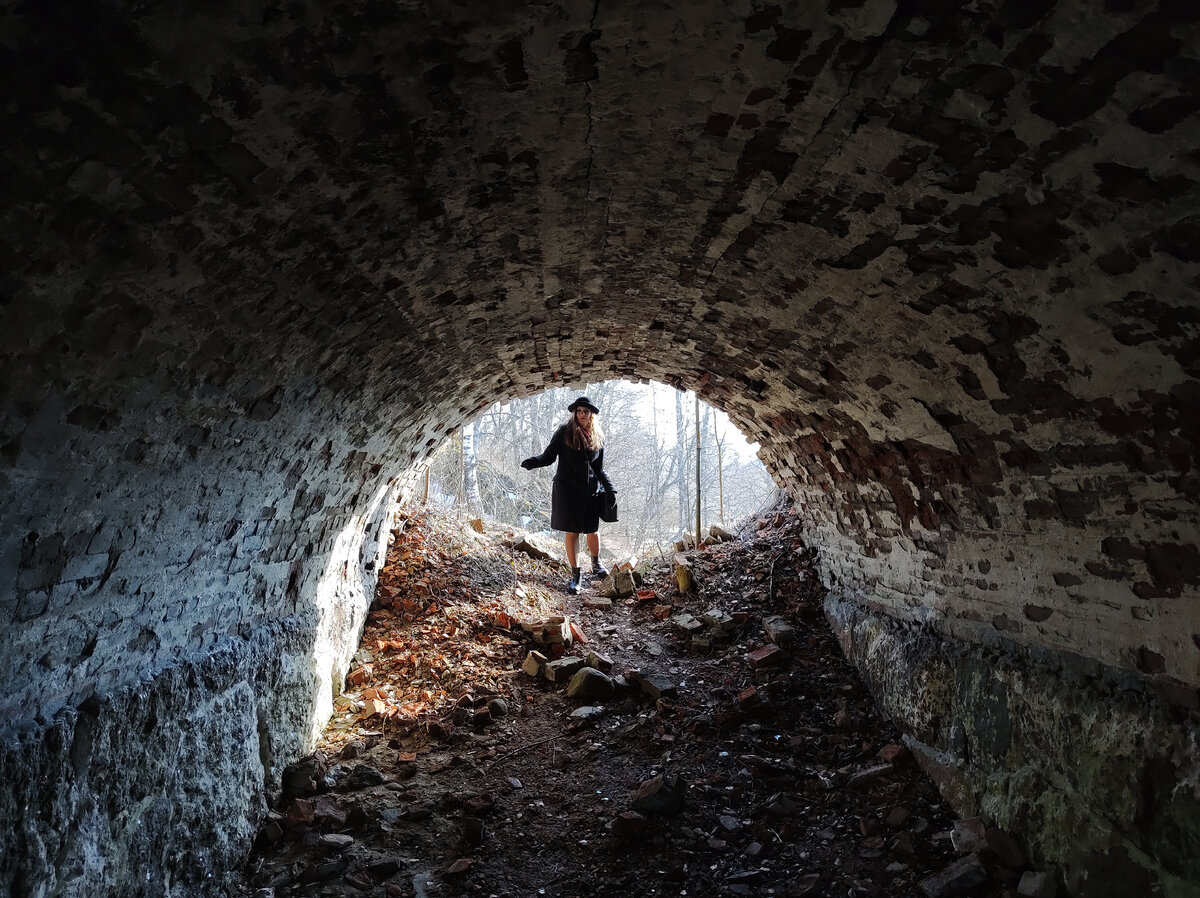 То и дело в крепости попадаются вполне себе цивильные залазы внутрь, через которые в теории её всё ещё можно пересекать в разных направлениях, однако мы не рискнули продвигаться дальше входа - налобных фонариков при себе не было, да и обувь не была припособлена к подтопленным внутренним помещениям.