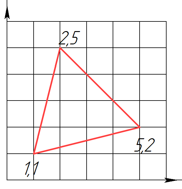 Невероятный алгоритм, который я, за свои 30 лет нигде и никогда раньше не встречал. Решил поделиться с Вами, надеюсь, будет интересно! Давненько не было математики... один космос, да космос. А ведь раньше на канале было полным полно математики, а теперь что?.. Но, этому есть объяснение. Полгода назад стал папкой сразу двух сыновей, и сами понимаете, времени для творчества совсем мало, прям критически мало. Так вот, что там с формулой Гаусса? Давайте представим, что у нас есть треугольник с координатами вершин (1,1), (5,2), (2,5) и стоит задача найти его площадь. Выписываем координаты вершин в 2 столбца, начиная двигаться по контуру треугольника против часовой стрелки. В левый столбец - координата "х", в правый - координата "у". Последняя координата в конце повторяется. Далее, перемножаем столбцы между собой. Для начала, берем "Зеленое" направление, а затем "красное". Этот алгоритм называют "Шнуровкой Гаусса", просто посмотрите на внешний вид... Итак, перемножаем координаты и складываем
