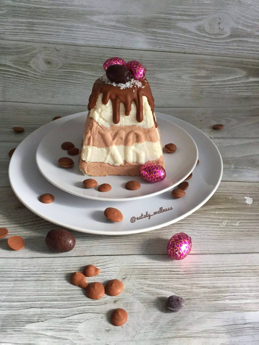 Ещё один простой вариант творожной пасхи для любителей шоколада #пасха #творог #быстроипросто Ингредиенты: творог от 5% (чем жирнее творог, тем вкуснее), сливки от 33%, сахар, сливочное масло, молочный шоколад Способ приготовления: Творог со сливками и сахаром пробить погружным блендером до однородной гладкой массы. Добавить сливочное масло комнатной температуры. Перемешать. Полученную массу разделить на 2 части. В одну часть добавить растопленный молочный шоколад и перемешать до однородности. Выкладывать, чередуя, творожные слои в пасочницу, застеленную марлей. Поместить под гнет и оставить на ночь в холодильнике. Готовую пасху извлекаем из формы, украшаем на свой вкус и наслаждаемся!