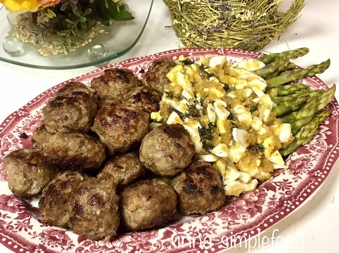 #академия #горячее #тефтели Очень вкусное блюдо, оригинальное, под соусом с ароматными сухарями, нежными и сочными тефтелями. Ингредиенты: Для спаржи:, свежей спаржи, Сок одного лимона, муки, Соль, Для соуса:, чеснока, сливочного масла, толченых сухарей (из белого хлеба), свежего тимьяна, сваренных вкрутую яйца, Соль, Чёрный молотый перец, Для тефтелей:, свиного фарша, говяжьего фарша, белого хлеба, репчатый лук, готовой горчицы, яйцо, Соль, Чёрный молотый перец, Масло растительное для жарки Способ приготовления: Приготовить тефтели: белый хлеб размочить в тёплой воде, лук очень мелко нарезать. Фарш выложить в миску, добавить лук, горчицу, сырое яйцо, отжатый хлеб, посолить и поперчить по вкусу, хорошо перемешать. Из фарша сформировать тефтели, обжарить их со всех сторон на разогретом растительном масле. Приготовить спаржу: спаржу промыть, обрезать жесткую часть ножек, смешать сок лимона с мукой и водой (примерно 0,5 литра) спаржу положить в лимонный раствор, а затем опустить вместе с