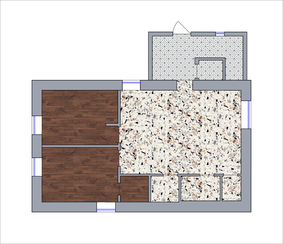 Ремонт идет свои чередом, стены снесли и возвели. Теплые полы проложили под плиткой (водяные, так как это частный дом). Что-же касаемо самих материалов, изобретением велосипеда решили не заниматься и выбрали 2 вида материалов. В спальнях ламинат, укладка указана схематично. В зоне прихожей плитка в марокканском стиле, в остальных комнатах плитка с рисунком терраццо. Ну и плинтуса. Пластик выглядел ужасно, мдф выбивался из бюджета. Выбор пал на деревянные + покраска в цвет стен. #планировка дома #планировка квартиры #планировочное решение #ремонт #проект #дизайн проект #подбор материала