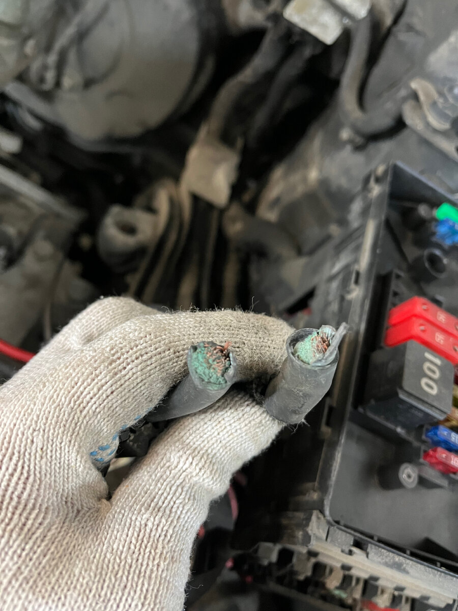 Странствовала машина долгую апрельскую неделю на эвакуаторе в поисках решения проблемы, но так и не смогла его найти. Только слышен цок, цок и всё. Открыл капот и понял , что здесь побыли «электрические» мыши. Добрый день, друзья. Собственно говоря, спустя неделю машина добралась до моих рук и снова на эвакуаторе. Причина проста и банальна , машина не заводилась вообще , поворачиваешь ключ - и ничего , было слышно отчетливо, что стартер не крутит и начинает издавать страшные звуки. Начал разбираться, что же тут не могли найти другие ремонтники. Снял воздушный фильтр и доступ к стартеру открылся. В глаза сразу бросилось новое втягивающее. По словам владельца, оно поработало один день и машина завелась , но на следующий день история повторилась. Клиент решил не мелочиться и купить новый стартер, чтобы машина наконец-то заводилась. Но ставить новый я не спешил и решил посмотреть провода , которые идут на блок предохранителей. Толстый провод , который шёл на втягивающее не внушил дове