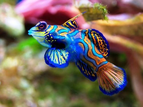 Мандариновая рыбка: Эта красочная рыба обитает в тропических водах на западе Тихого океана. Мандаринка – маленькая коралловая рыбка вытянутой формы длиной до 6 см. Известность это животное приобрело именно за свой насыщенный окрас и необычную форму, из-за чего его даже иногда называют «психоделической мандаринкой». Она очень популярна в качестве аквариумного питомца, но крайне привередлива к содержанию в неволе и часто умирает от голода, отказывая