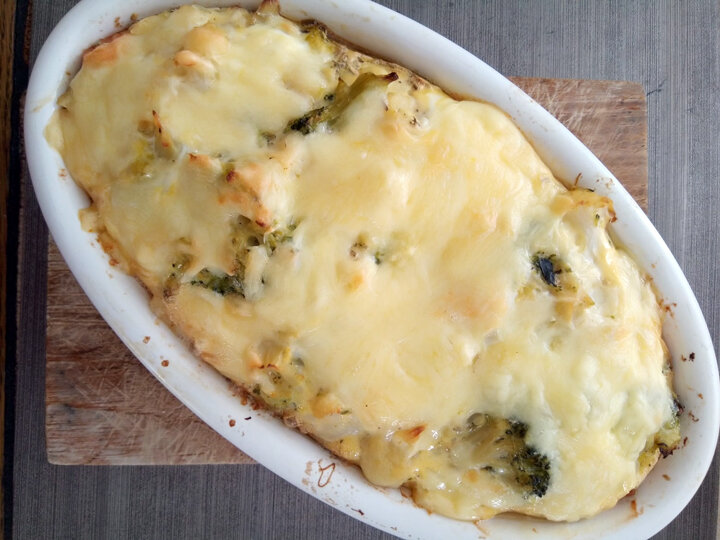 5. Залить яично-молочно-сырной смесью содержимое формы, посыпать оставшимся сыром.