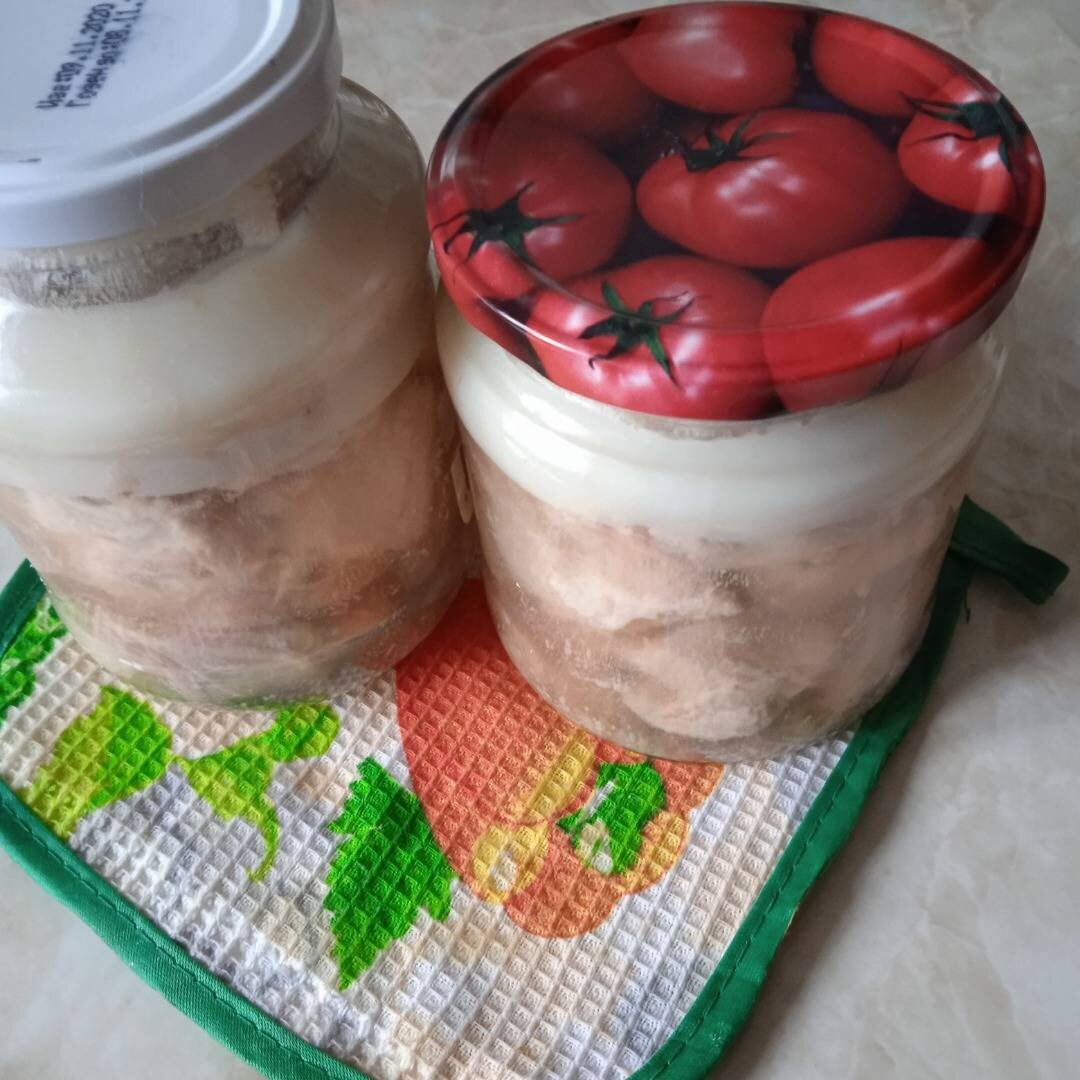 Ингредиенты: свинины (это на 3 баночки по 500 мл., у меня было 800 гр. получилось 2 баночки), в каждую баночку: , лавровый листик, чеснока, чёрного перца, для рассола: , воды, соли