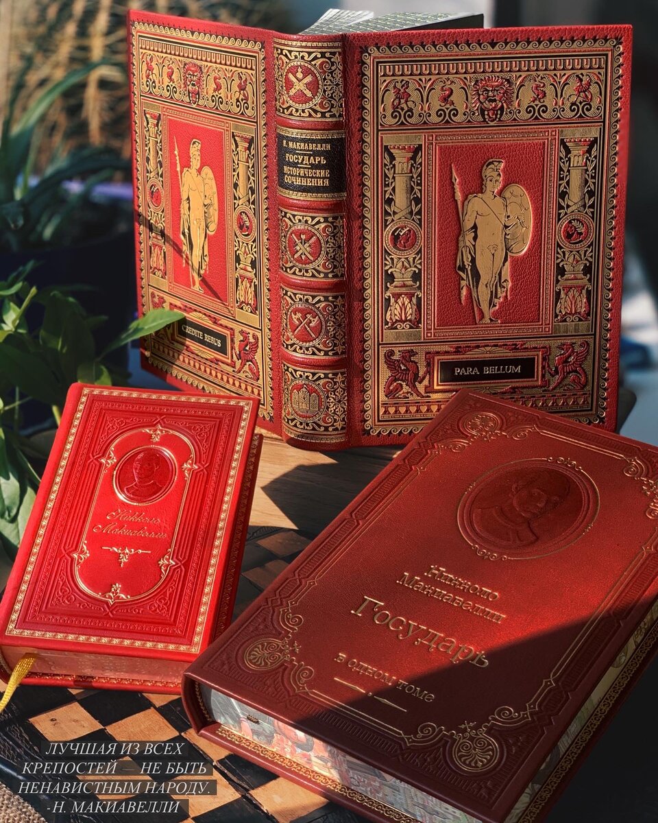 📍Политика, по Макиавелли, имеет собственную нравственную логику, отличную от общепринятой и подчас аморальную. Мягко говоря. 📍 «Добро приедается», считал он. Его тексты были жёсткими, провокационными, спорными, местами рубили неприглядную «правду матку», только вот актуальности своей не утратили спустя почти 500 лет. 📍Книга не многим понравилась. И в 1559 г. все труды Никколо Макиавелли попали в «Индекс запрещённых книг» папы Павла IV, причём в категорию «под абсолютным запретом». Эта цензурная система просуществовала до 1966 г.‼ ✅Умы бывают трех типов, считал Макиавелли: «один все постигает сам; Второй может понять то, что постиг первый; третий — сам ничего не постигает и постигнутого другим понять не может. 📍Первый ум — выдающийся, 📍второй — значительный, 📍третий — негодный». ✅ На фото - труды Макиавелли: в серии «Портрет», малой Библиотеке шедевров (малый формат) и в серии «PARA BELLUM». Все Переплёты - из натуральной кожи. Окрашенные обрезы и правда жизни внутри. Внутри томов