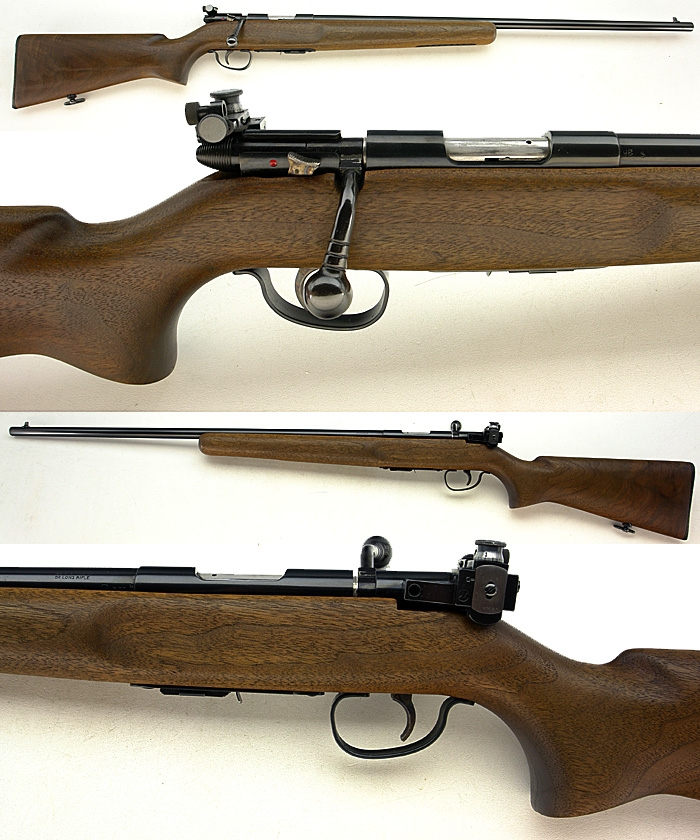 10 тысяч таких винтовок, кстати, были заказаны армией США в качестве тренировочных. Их легко отличить - если "гражданские" воронились, то "армейские" подвергались "паркеризации" - этот термин был запатентован Робертом Паркером (владельцем фирмы Parker Rust Proof Company) для разработанного им процесса горячего фосфатирования, которое было дешевле воронения и достаточно широко применялось на армейском оружии тех лет.