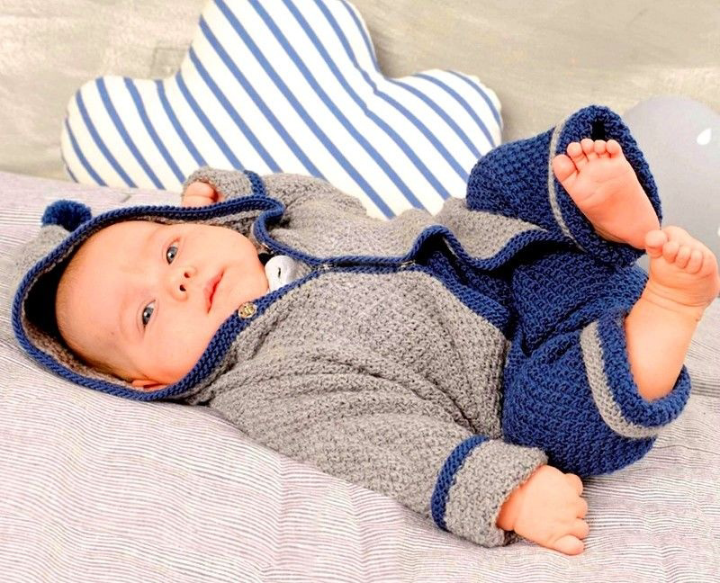 У этого практичного комбинезона бретели застегиваются на кнопки. РАЗМЕРЫ 62/68 (74/80) 86/92 ВАМ ПОТРЕБУЕТСЯ Пряжа (100% овечьей шерсти; 160 м/50 г) — 50 г серой и 150 (200) 200 г дымчато-синей; спицы №3,5; круговые спицы №3,5; 4 кнопочных застежки. УЗОРЫ И СХЕМЫ ЛИЦЕВАЯ ГЛАДЬ Ряды в прямом и обратном направлении = лицевые ряды — лицевые петли, изнаночные ряды — изнаночные петли. Круговые ряды: все петли вязать лицевыми. ИЗНАНОЧНАЯ ГЛАДЬ Ряды в прямом и обратном направлении = лицевые ряды — изнаночные петли, изнаночные ряды — лицевые петли. Круговые ряды: все петли вязать изнаночными. ПЛАТОЧНАЯ ВЯЗКА Лицевые и изнаночные ряды — лицевые петли. ДВОЙНОЙ ЖЕМЧУЖНЫЙ УЗОР 1-й и 2-й р./круг.р.: попеременно 1 п. лицевой глади, 1 п. изнаночной глади. 3-й и 4-й р./круг.р.: попеременно 1 п. изнаночной глади, 1 п. лицевой глади. Постоянно повторять 1—4-й р./круг.р. ПЛОТНОСТЬ ВЯЗАНИЯ 23 п. х 34 р. = 10 x 10 см, связано двойным жемчужным узором. ВЫКРОЙКА ВЫПОЛНЕНИЕ РАБОТЫ ПРАВАЯ