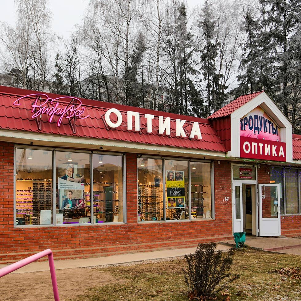 Магазину оптики нужна хорошо запоминающаяся вывеска, которая будет заметна издалека и хорошо читаться с разных ракурсов. Для этой цели подходят объемные буквы и световой короб. Эти рекламные конструкции выглядят ярко в любое время суток – днем без подсветки и вечером, когда благодаря подсветке вывеска обращает на себя еще больше внимания.