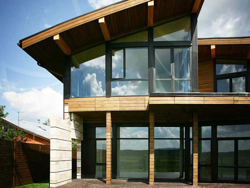 Добрый день! Узнать, что такое классический фахверк можно в наших предыдущих публикациях на этом канале. Если коротко, то это – технология строительства, в которой несущей основой является деревянный каркас, включающий в себя вертикальные стойки, горизонтальные балки и диагональные раскосы. Сегодня мы хотим познакомить Вас с определением «стеклофахверк». Что это такое? Стеклофахверк Стеклофахверк – это разновидность традиционного фахверка, которая имеет почти сплошное остекление, чаще всего до ¾ всей стеновой поверхности. К основным достоинствам такой технологии относится срок реализации проекта, который часто не превышает 2 месяцев. Согласно технологии, используют окна с двухкамерными стеклопакетами со специальными энергосберегающими стеклами. Для гарантии безопасности эксплуатации внешние и внутренние стекла изготавливают из триплекса толщиной 6 мм. В случае если всё же настолько плотное стекло удастся разбить, почти все осколки останутся на пленке, которая находится в прослойке, поэ