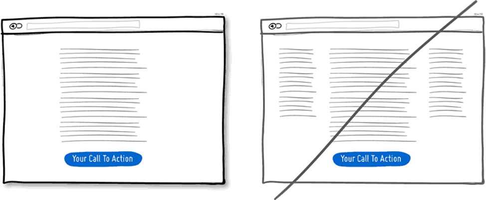 Повторение призыва к действию – это стратегия, которая больше применима к лонгридам (т.е. страницам, которые содержат относительно большое количество вертикально расположенной информации и её нужно пролистывать (“скроллить”)). Конечно, не стоит злоупотреблять этим правилом и 10 раз показывать на одной и той же странице призыв к действию: это будет раздражать ваших пользователей