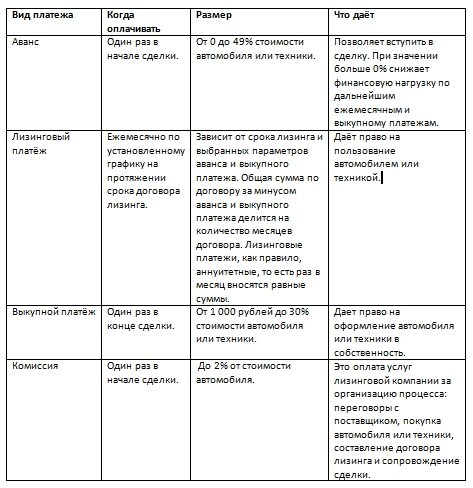 Как и размер аванса, сумму выкупного платежа можно выбрать самостоятельно. Важно, что в совокупности эти два платежа не должны превышать 49% от стоимости автомобиля или техники. То есть если вы заплатите аванс в размере 20%, то выкупной платеж должен быть не более 29%. Почему такие ограничения? Всё дело в практике применения налогового законодательства. При внесении крупных платежей, которые больше чем наполовину перекрывают стоимость взятого в лизинг имущества, сделка может быть квалифицирована как договор купли-продажи. Тогда к нему применяются иные нормы бухгалтерского и налогового учета, меняется схема зачета НДС, правила расчета амортизации и налога на прибыль.