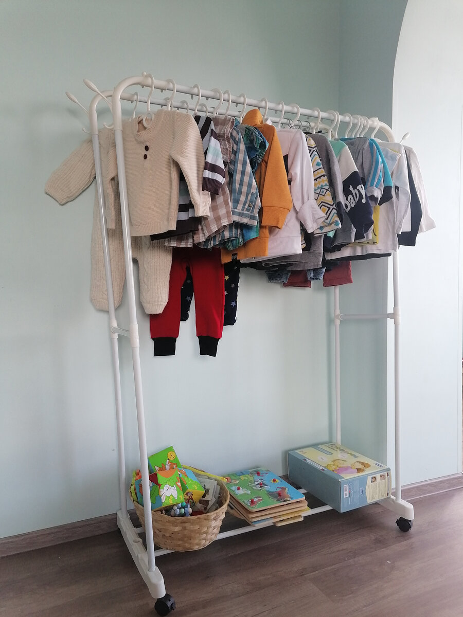 Всё. Не могу больше. До жути надоели эти комоды и хранение по системе Мари Кондо в валиках. Всё равно у меня так красиво и аккуратно с 3 детьми не получается. А мне так хотелось, чтобы всю одежду было видно разом, чтобы всё аккуратно висело. Теперь можно кофты прикладывать к брюками и смотреть их сочетание. Идеально! Я очень рада. Внизу организовала хранение игрушек для малыша: набор умницы, деревянные доски с вкладышами, пазлы и кубики с погремушками. Вешалку покупала на wildberries за 1300 руб, набор детских плечиков 20 штук 350 руб. Теперь дочке тоже хочу организовать такое же хранение. #хранение вещей #детские вещи