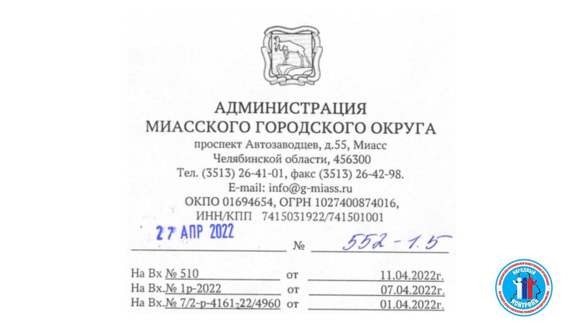 Поступил ответ по поводу строительной свалки напротив жилого дома в Миассе. "14.04.2022 г. сотрудниками Администрации МГО проведена проверка с выездом на место для уточнения координат несанкционированной свалки отходов.