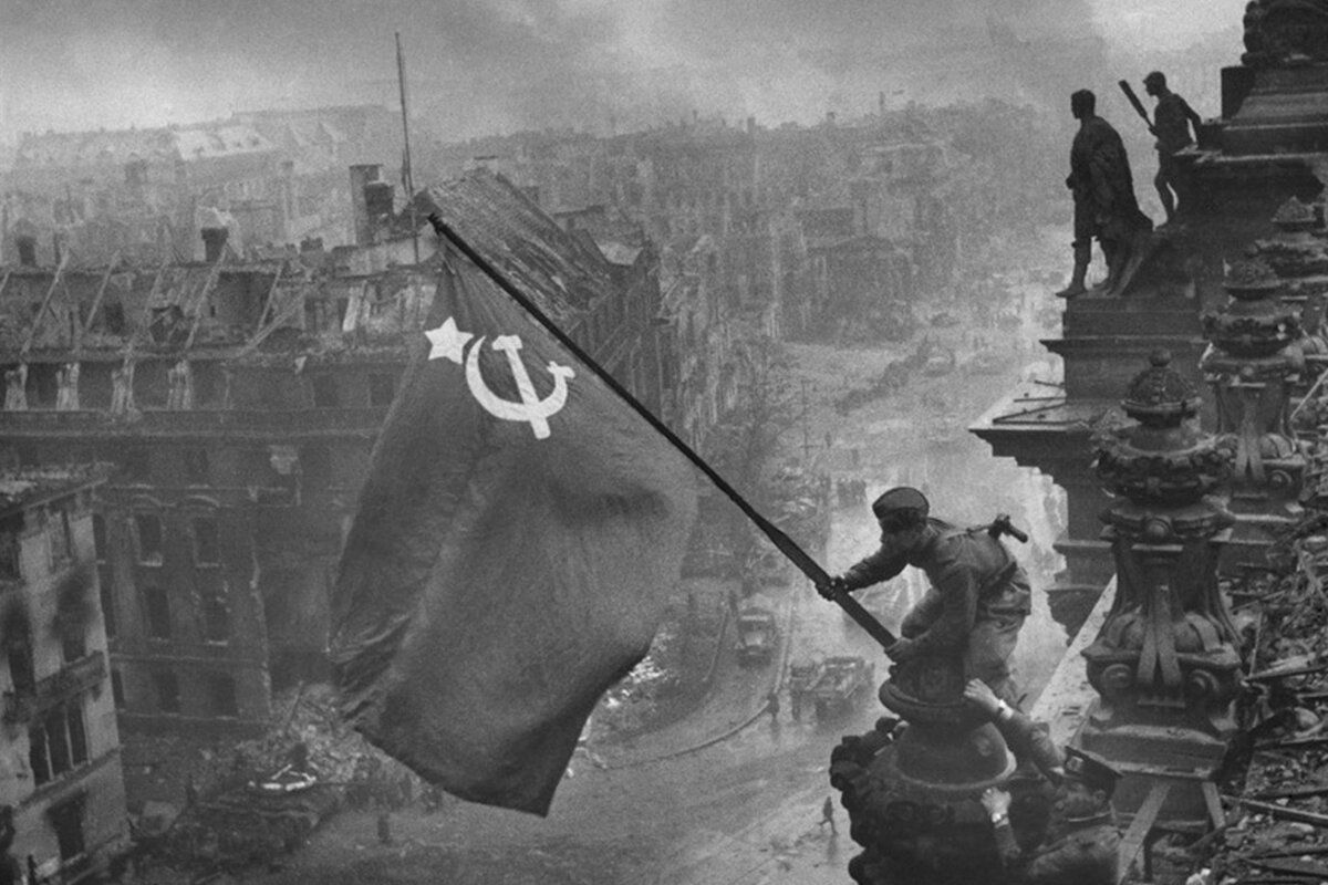 Под сенью Советских знамен, Вспомним воинственный клич – «Ура», мы фашистов согнём, В глотках фашистов затихнет «китч». Твердая поступь России: Идет, ускоряя шаг. Мы в «гости» врага не просили: То «четвертого Рейха» враг. Под ударами Родина-Мать: «Кнут» врага из свинца. Но нельзя отступать, За спиною Москва. Вспомним Девятое Мая: Россыпь Советских знамен. Награды героев сверкая, В боях закаленных огнем.