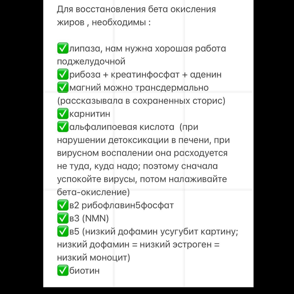 Для того, чтобы наш организм не болел, и мышцы сокращались, сердце перекачивало кровь, дышали легкие и тп необходима энергия. Откуда она берется?🤔 🟢В митохондриях происходит бета-окисления жирных кислот , которые необходимы нам для цикла Кребса (по его окончанию вырабатывается энергия - АТФ🔥) Три этих процесса работают вместе. Они команда (троица)🤝 . Когда вылетает кто-то один из строя, то холестерин увеличивается, в12 истощается, панические атаки случаются, надпочечники устают, полипы растут, желчь сгущается🥴 . Для хорошей работы троицы желчные протоки должны быть свободны👌🏻 👉🏻например, при кандиде все протоки в слизи (⬆️адипиновая и ⬆️субериновая кислоты) 👉🏻А лектин (картофель, 🍅 🌽 , соя, фасоль, 🥚 ☕️), пшеница тормозят выработку липазы , которая участвует в бета-окислении 👇🏼 отсюда бета-окисление сменяется на омега-окисление , это приводит в дефициту В12 - начинает ломаться метилирование (можно оценить по уровням: лимонной изолимонной янтарной к-там , они увеличива