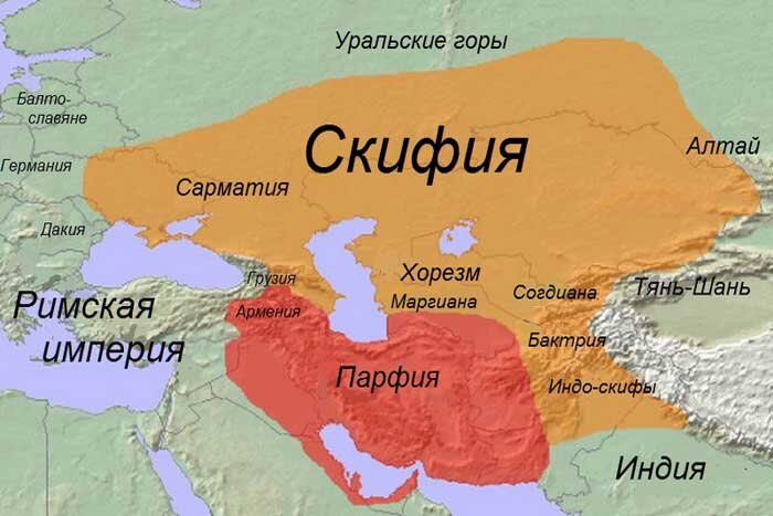 Странно, что на уроках истории нам не дают сравнение этих четырех карт. Хотя, казалось бы, их явное сходство является очевидным. Область расселения скифских племен, владения кипчакской конфедерации и границы Золотой Орды совпадали практически полностью, поскольку были обусловлены географически. Равно как они и частично совпадают с территорией современного Казахстана. Но в таком случае возникает закономерный вопрос: существует ли историческая преемственность между скифами, кипчаками, татарами Золотой Орды и нынешними казахами? В генетическом плане она, безусловно, существует. ДНК казахов показывает значительную связь с ДНК скифских курганов, которые остались тут с античных времен. Но это не значит, что казахи являются прямыми потомками скифов. Их взаимосвязи были значительно более сложными. Итак, за пару столетий до нашей эры в кочевой части Средней Азии преобладали зубастые племена иранского происхождения. Массагеты, саки, дахи были весьма могущественны, а один из союзов этого корня да