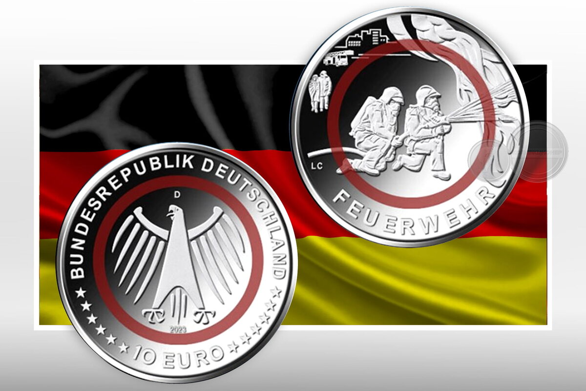 Федеральное правительство приняло решение отчеканить коллекционную монету номиналом 10 евро «Пожарная команда» и выпустить ее в мае 2023 года. Эта монета будет второй из многолетней серии «На службе общества», в которой акцентируется внимание на особой важности профессиональных групп, незаменимых для функционирования общества и жизни каждого человека. На каждой монете будет пластиковое кольцо, которое будет отображать соответствующий цвет профессиональной группы.
