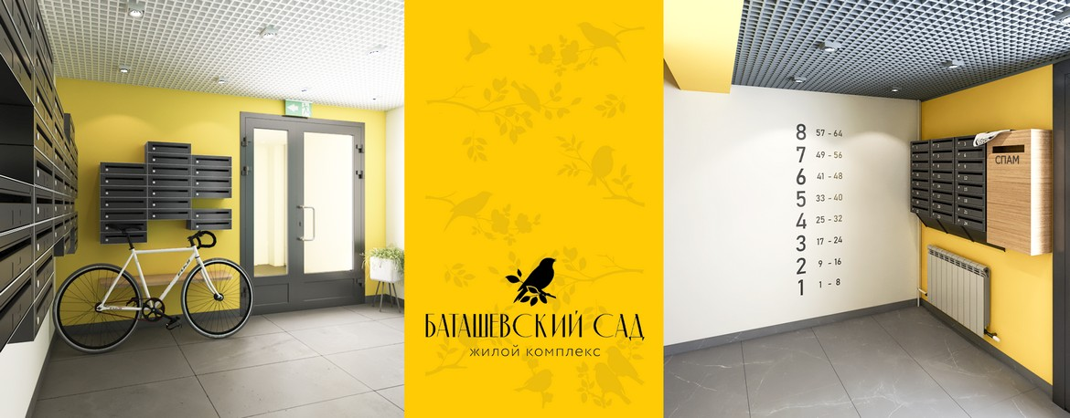 PROJECT: Разработка интерьеров мест общего пользования в ЖК Баташевский сад LOCATION: Россия, Тула, ш. Венёвское, ЖК "Баташевский сад" YEAR: 2018-2019 CREATIVE TEAM: Антонина Чурочкина, Шпилько Кристина ЖК "Баташевский сад" расположен в зеленой зоне на границе с одноименным парком в Зареченском районе Тулы. "Соседство с природой, аккуратные малоэтажные дома с красивыми фасадами и шикарная придомовая территория, на которой каждый найдет себе занятие по душе - что может быть лучше? И все это в городе, а не за его пределами!" - выдержка из буклета ЖК "Баташевский сад". Помимо соседства с природой очень важно выходя из своей квартиры на прогулку в парк проходить через уютные и современные места общего пользования. ТИПОЛОГИЯ ЦВЕТОВЫХ РЕШЕНИЙ МЕСТ ОБЩЕГО ПОЛЬЗОВАНИЯ За основу цветовых решений интерьеров взяты фирменные цвета жилого комплекса. ЦВЕТОВАЯ СХЕМА 1 ПОДЪЕЗДА ВИДОВЫЕ КАДРЫ: Холл нулевого этажа ВИДОВЫЕ КАДРЫ: Первый этаж ЦВЕТОВАЯ СХЕМА 2 ПОДЪЕЗДА ВИДОВЫЕ КАДРЫ: Первый этаж, лифт