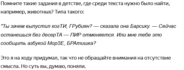 Итак, сегодня пятница, а впереди — длинные выходные! С чем я вас и поздравляю) Решил сегодня написать что-нибудь лёгкое, но интересное, а что может быть интереснее, чем игра в слова? Вот ссылка на первую нашу с вами попытку. Напомню смысл задачи: Вот как-то так. Давайте попробуем поиграть с новым рассказом, в котором загаданы названия ещё 15 российских городов (не тех, что в первой игре). Поехали! Наконец-то выходные! Мы с друзьями ехали в деревню, где у одного из них, Никиты, жили бабушка и дедушка. "Классно зависнем! — анонсировал Никита всю дорогу. — У них и баня есть, и речка, и мангал". "И чего же мы ждём? — воскликнул я. — Пошли купаться сразу, как приедем!" Но нас обломали. С киркой и лопатой нас встретил Никитин дед, который сразу заявил: сначала придётся поработать на даче. "Ховаться от работы не надо, внучки́, — сказал он. — Работать полезно. Разбирайте инструменты!" "Дайте-ка подумать," — попытался я увильнуть от работы. "А ты не думай — копай!" — сказал злобный дед и сунул