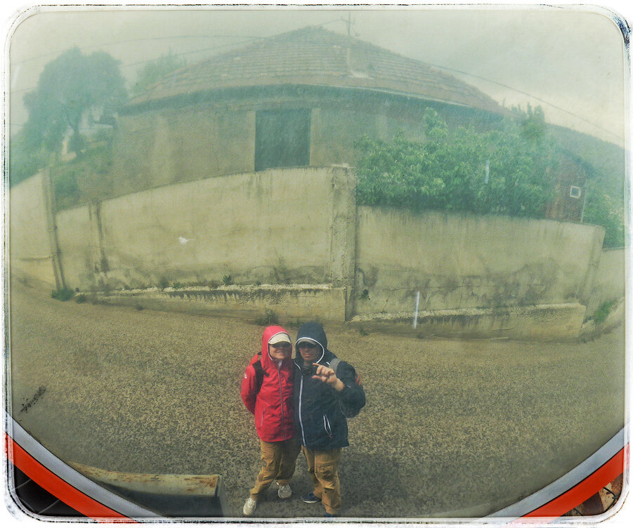 Подходящее местечко скоро обнаружилось — зелёная площадочка, возвышающаяся над сосновой посадкой, с видом на город и крышами частного сектора внизу. Мы расположились на краю площадки. Обнаружили, что не разобравшись в орнаменте грузинского алфавита, купили вместо двух бутылок пива две бутылки сладкой газировки, посмеялись над собой. Выпили сластушки — за неимением пива — и отправились вниз по дороге. Накрапывал дождик, но настроение наше было самым приподнятым. Почему-то местность и погода навевали самые разнообразные ассоциации и воспоминания о давних наших путешествиях, и воспоминания эти были приятно-тревожащими. Мы шли грунтовкой вдоль чьих-то заборов, цвели сирень и багряник. Над дорогой висело мутноватое выпуклое зеркало, какие иной раз можно встретить на проезжей части. И мы не преминули организовать себе забавное селфи…