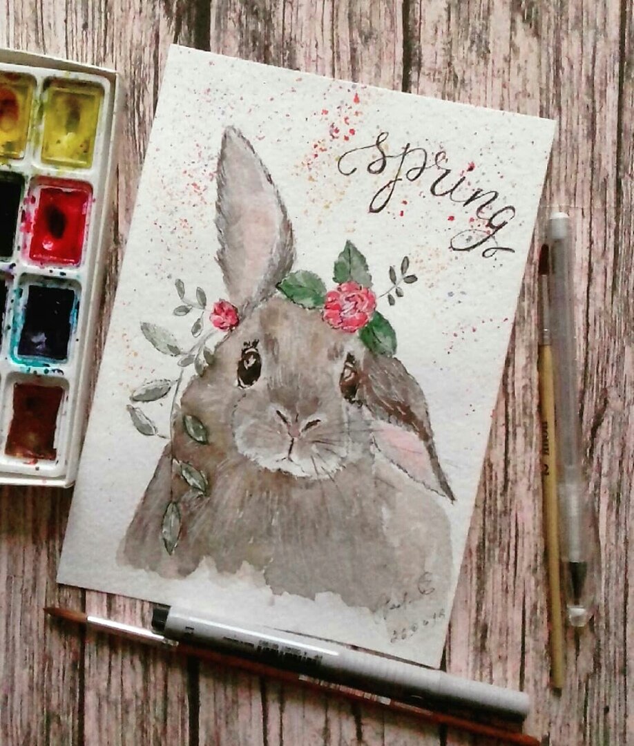 Просыпается природа! Все громче и веселее поют птицы, а зайцы примеряют новую шубку. Чего это я о зайцах? Да встретился мне на лесной дорожке вот это чудак. Косой и влюбленный. А еще с печалью в глазах. А почему он такой печальный? Наверное его зайчиха ушла на шопинг и задержалась. А может... может она зависла с подружками в модном лесном кафе, а зайчатки голодные. Или все таки на пути зайца возник молодой альфа-самец, и зайчиха с ним укатила в ночной клуб. ********************************************************* Акварельный скетч 2019 г