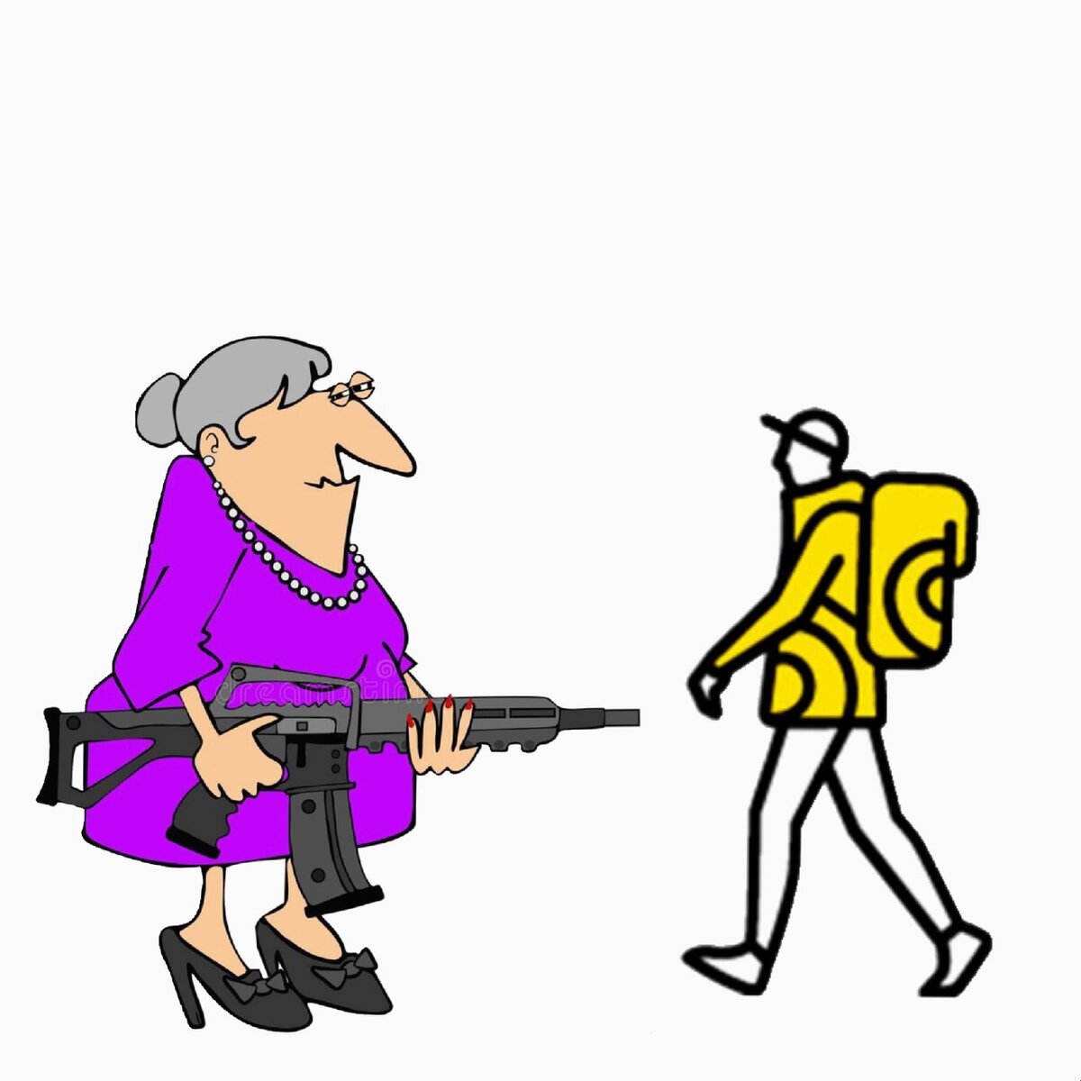 А в ответ получают жесткую взбучку, потому что тетенька очень этих курьеров не любит. И очень тяжело потом выцепить бедного курьера из ее мощных лап и отобрать у него свою законную оплаченную еду. ))))