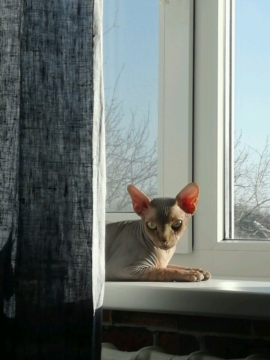Как я одеваю своего кота. Для начала его нужно поймать, а котик мой не так прост как мог показаться, бегает он быстро. Вход идут разные уловки и приманки . После того как кот пойман, сажу его себе на колени и одеваю как ребёнка. Он уже понимает что одевания не избежать и не сопротивляется, а может думает: - Ладно, ладно одевай раз ужь тебе так хочеться я все равно сниму. Зачем я одеваю кота. О первой причине многие конечно знают, кот голый и ему холодно, в прохладное время года. Вторая причина в том, что почти все сфинксы гиперактивны. У кого есть кот, тот меня поймёт. Одежда сковает движения, и кот становиться менее активным. Одежда это спасение, она глушит гиперактивность сфинкса. Мой Жорик меняется до неузнаваемости, становиться спокойным и уравновешенным. Он конечно её постоянно снимает с себя, я выкладывала видео как ему это удаётся, но пока на нем одежда есть возможность отдохнуть от его гиперактивности. Спасибо если дочитали до конц