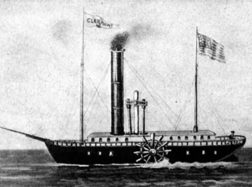 В эпоху индустриализации , когда активно появлялся новый транспорт и промышленность, в 1803 году , в Париже на реке Сене проходил испытание первый несовершенный пароход , построенный американским инженером Робертом Фултоном. Несмотря на огромное количество новых изобретений , до последней трети 19 века , преобладал парусный флот и люди просто не могли себе представить , что какая-то огромная , нелепая железная конструкция может двигаться по воде . 17 августа 1807 года , Фултон проводит своё испытание : пароход под названием «Клермон» впервые запускается на реке Гудзон. Посмотреть на это событие собралась огромная толпа людей , они стояли на берегу и смеялись над затеей Фултона, они были уверены в его неудаче. Но машина была запущена, и со страшным , диким шумом двинулась вперёд (представьте себе это зрелище). После этого , насмешки сменились на громкие крики восторга. Но всё же изобретение вызывало не только удивление , но и страх. Представьте себе , из трубы парохода выры