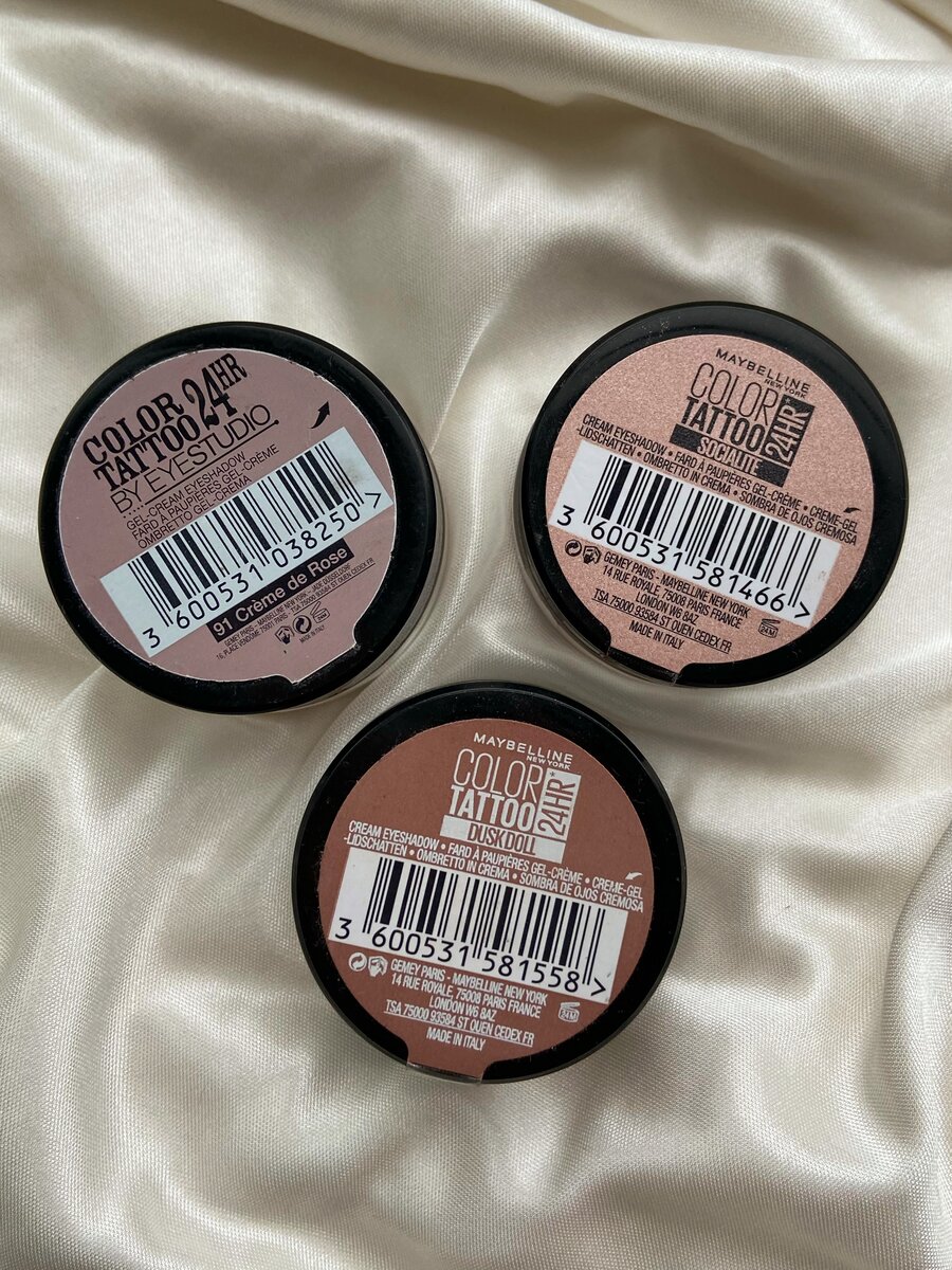 Очень редко у меня получается писать отзывы по разным причинам, но лучше редко, чем никогда. Расскажу о кремовых тенях, которые горячо любила последние 6 лет. Color Tattoo 24hr от Maybelline New York. Раньше для меня это были не просто тени, это были стеклянные баночки с волшебным наполнением, благодаря которым мой макияж всегда был потрясающе красивым, но одновременно простым в исполнении. Сейчас, спустя годы у меня осталось только 3 оттенка, хотя раньше было штук 7. Начну слева направо: 91 Creme de Rose Холодный розовый с капелькой серого, абсолютно матовый. Именно этот оттенок я покупала 5 раз. Это был потрясающий оттенок на каждый день, шикарная база под абсолютно любые тени. Оттенок, который замечательно выравнивал цвет кожи на веках. Но увы, его уже нигде не купить. От того моя заинтересованность этими тенями сошла на нет. С момента, как были сделаны фото для этого отзыва и на момент его написания прошло 9 месяцев. Именно этот оттенок у меня, к сожалению, закончился. Прилагаю