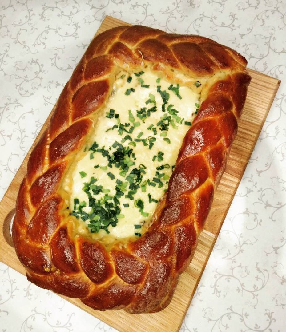 Ингредиенты: Тісто, Кефір теплий, Дріжджі , Цукор , Сіль , Яйця, Борошно , Начинка, Гриби смажені, Картопля , Яйце, Сир