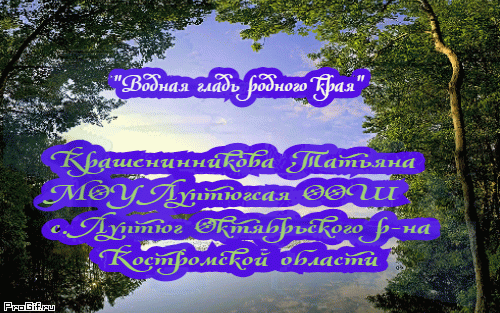 Водная гладь родного края Река - наше все! Как хорошо купаться жарким деньком в прохладных водах этой небольшой речушки. ... Ну, здравствуй, речка! Крашенинникова Татьяна Алексеевна МОУ Луптюгская ООШ 7 класс "Мир глазами детей"