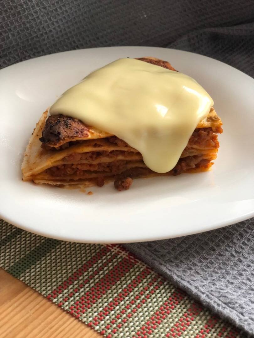 Рецепт для тех, кто хочет быстро и сытно поужинать. Улетает со стола в раз) Ингредиенты: Лаваш, фарша, Томатная паста , Специи, Репчатый лук, Твёрдый сыр Способ приготовления: Очистить лук. Нарезать кубиками. На сковороде разогреть немного масла, добавить лук и пассеровать до золотистого цвета. К луку добавить мясной фарш (у меня был из индейки), перемешать. Обжаривать фарш 5 минут, постоянно помешивая. К фаршу добавить любимые специи, томатную пасту. Перемешать. Тушить ещё 5-7 минут, возможно немного дольше, если у вас другое мясо. Фарш должен получиться почти или полностью готовым. В форму для запекания выложить лист лаваша, немного фарша. Потом снова лаваш и фарш. Так чередовать слои, пока не закончится фарш. Посыпать сыром и поставить в разогретую до 180 градусов духовку на 7-10 минут. За это время сыр расплавится, а слои пропитаются. Я запекала без сыра изначально, сыр уже порционно добавляла каждому отдельно. Достать из духовки, накрыть и дать постоять минут 10. Подавать сразу ил
