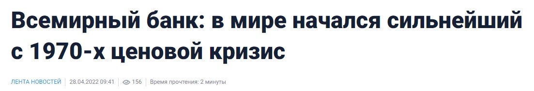 Аналитики Всемирного Банка констатируют, что такой "товарный шок" является сильнейшим с 1970-х годов, усугубляется своей внезапностью и всеобъемлющим характером. Подорожали одновременно все важные группы товаров, и потребители не имеют возможности заменить одни товары другими.