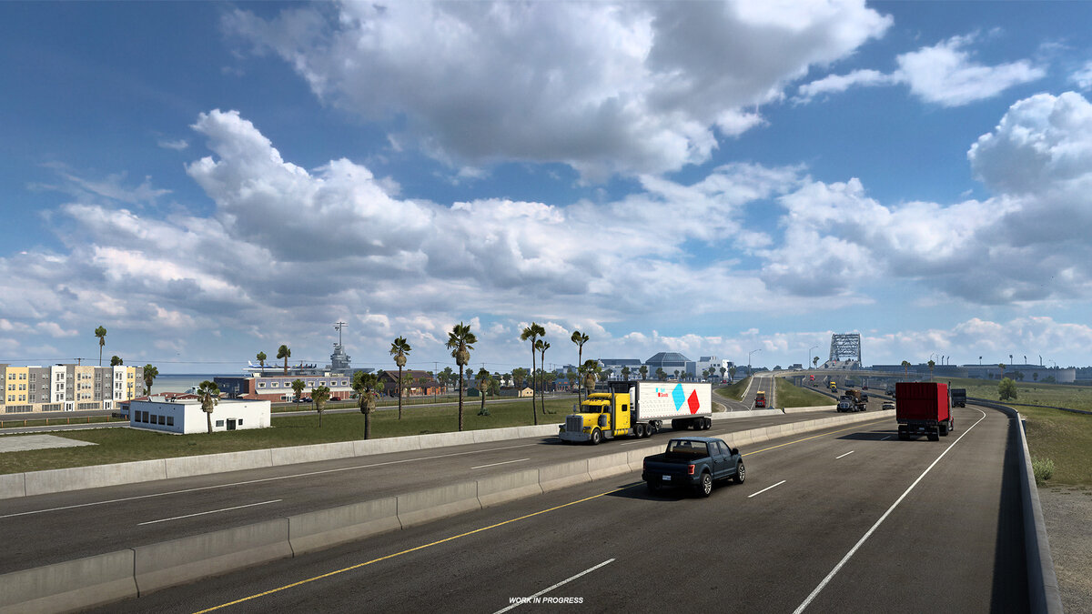На данный момент стало традицией начинать статью в блоге, посвященную Техасскому DLC , с чего-то большого. Знаете ли вы, что длина береговой линии, ограничивающей прибрежную географию Мексиканского залива, составляет 367 миль (591 км)?! Это весьма внушительная цифра! Поэтому неудивительно, что в грядущем расширении карты для American Truck Simulator будет несколько городов, расположенных вдоль береговой линии. Наша цель с этими городами заключалась не только в том, чтобы представить реальные аналоги, но и в том, чтобы дать игрокам возможность увидеть несколько биомов в штате в дополнение к подавляющим пустыням. Ведь, как было сказано выше, площадь береговой линии, проще говоря, довольно большая. Давайте отправимся с юга на север и кратко опишем, что вы можете ожидать от каждого города, через который вы сможете пройти во время путешествия вдоль побережья. Браунсвилл станет самым южным городом, который, помимо того, что расположен практически на границе с Мексикой, также являе