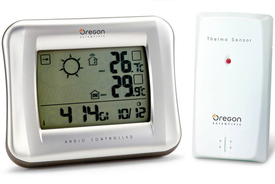 Метеостанция с всепогодным беспроводным радиодатчиком Oregon Scientific THN132N (термометр, без дисплея); расстояние между датчиком и базой до 30 м (в зависимости от условий); обновление информации примерно каждые 40 секунд; частота радиосвязи: 433,92 МГц