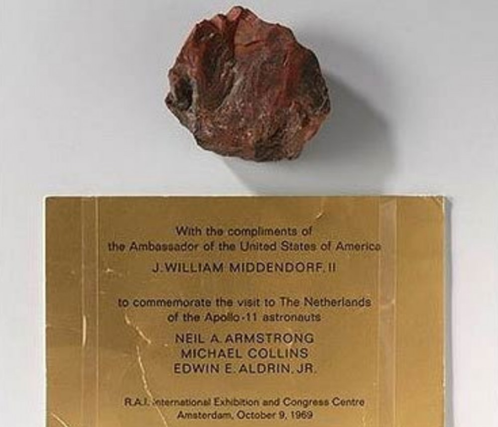 Знакомая картинка? Ее обычно постит какой-нибудь разгневанный читатель форума, на котором участники обсуждают характеристики привезенных астронавтами программы Аполлон лунного грунта. "Да какой-там лунный грунт!", кричит такой читатель: "Это все подделка! Один камень взяли и проверили, он оказался окаменевшей деревяшкой". "Если все остальные проверить, они тоже будут фальшивками!". Спрашивают, откуда такая информация. Читатель с гордостью приводит ссылку на БиБиСи. Вот там написали, а там врать не будут! Ну и картинку, что выше. Ну вот, например, с сайта некоего Надежды Кузнецовой (Щелокова. Иванова...): Или вот недавнее на моей площадке: Андрей Букарев развил тему. Теперь получается, что окаменелое дерево премьер-министру Голландии подарил не кто иной как Нил Армстронг. И ведь сколько раз разбирали эту "сенсацию", но лунные опровергатели все равно с завидным упорством тащат ее снова и снова. Посмотрим на табличку. Она хоть как-то связана с тем, что похоже на камень? Нет. Табличка сам