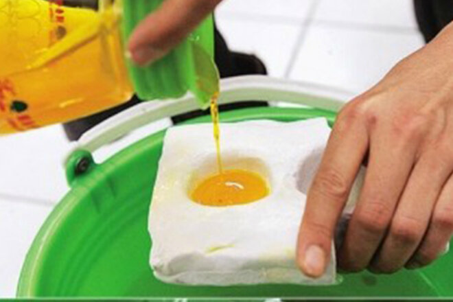 - Форму опускают в раствор карбоната калия, чтобы вокруг желтка возникла защитная пленка. Она позволяет желтку держать жидкий состав внутри. Форму надо встряхивать иногда, чтобы продукт внутри стал круглым. Через два часа достают из формы и оставляют сохнуть.