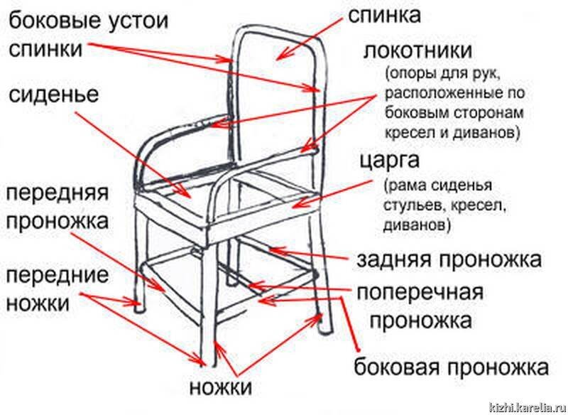Но деталей у стула очень много и все они имеют свои названия. Давайте разбираться.