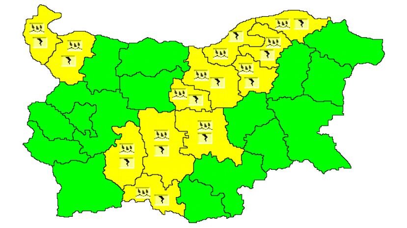 Из-за дождей и гроз в 12 областях Болгарии объявлен „желтый“ уровень опасности